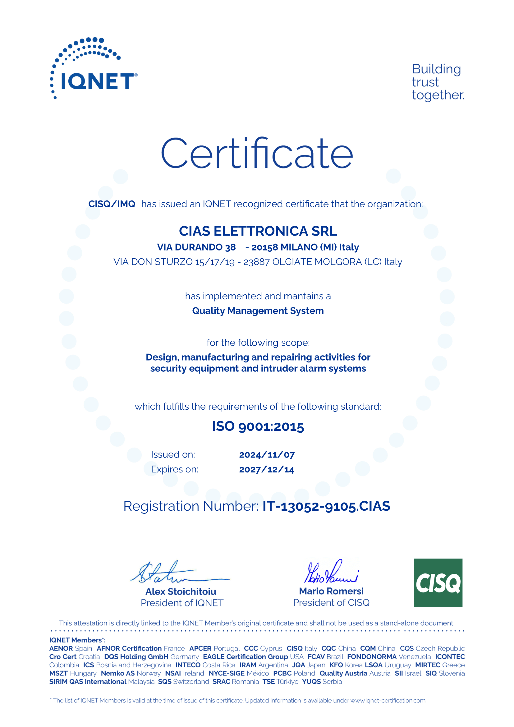With a view to world markets, the team elegantly promotes the “Made in CIAS” brand. Matteo, Andrea, Eric, Fabio, Sandro and Manuel—each with a unique background but all with solid experience in the security sector. Skilled and attentive to market needs, they are personally invested in every project, large or small. They help customers navigate the wide range of available solutions, highlighting the best choice for each real-life scenario. Equally at ease during on-site inspections, training workshops, or sporting events like tennis, basketball, running, or soft-air, their versatility is appreciated by colleagues and customers.